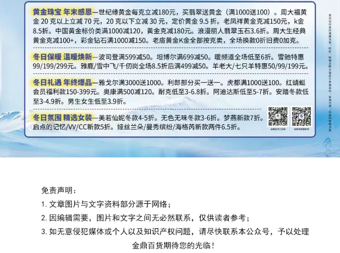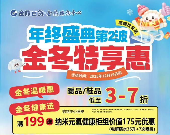 金鼎百货丨年终盛典第2波![玫瑰]金冬特享惠,冬款3-7折,中心满199送电解质水。